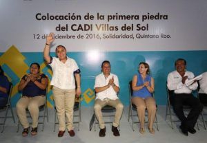 PLAYA DEL CARMEN, Quintana Roo, 13 de diciembre.- El Gobernador del Estado, Carlos Joaquín González, y la Presidenta Municipal de Solidaridad, Cristina Torres Gómez, colocaron la primera piedra del Centro Asistencial de Desarrollo Infantil (CADI), como un compromiso de campaña cumplido a los vecinos del fraccionamiento Villas del Sol.