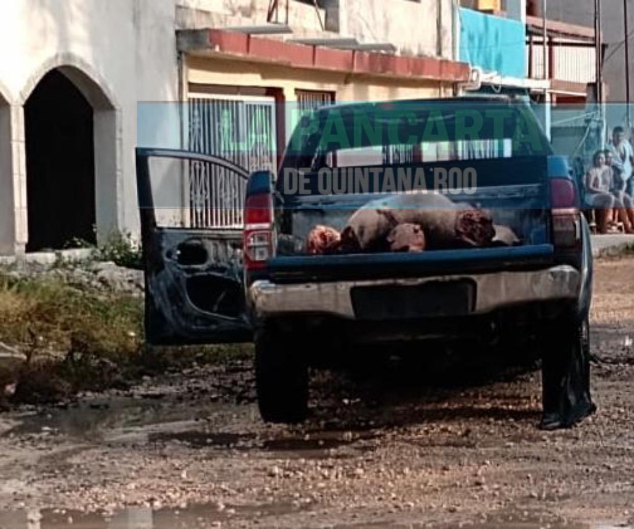 CANCÚN, Quintana Roo, 20 de abril. – Bomberos de la ciudad de Cancún sofocaron las llamas de una camioneta que se encontraba incendiándose con un cuerpo desmembrado en la batea en la delegación Alfredo V. Bonfil.