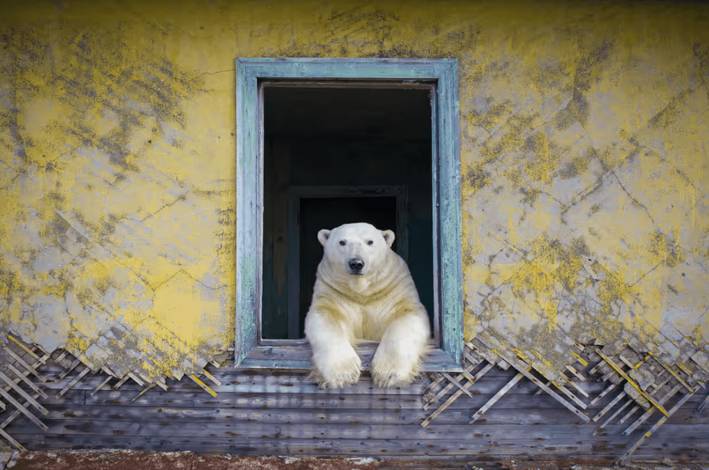 Aunqueee… se sorprendió cuando al llegar no encontró a ninguno de estos animales. Entonces, en su camino de regreso, se dio cuenta que los osos se habían mudado a la estación meteorológica rusa abandonada de Kolyuchin.