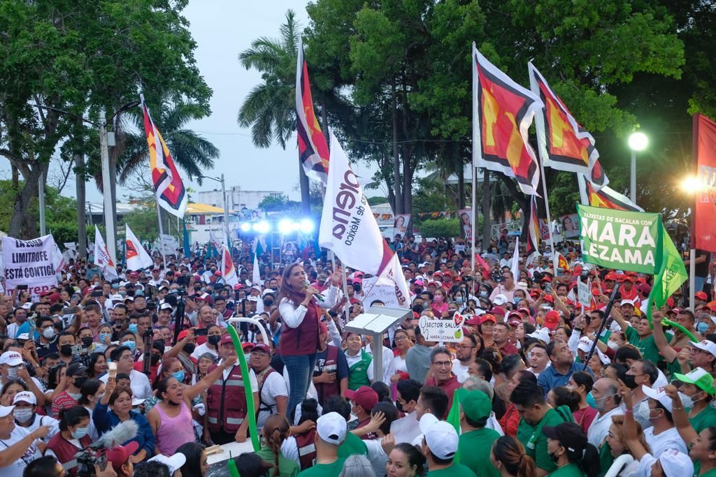 CHETUMAL, Quintana Roo, 28 de mayo. – Ante más de 12 mil personas, Mara Lezama, candidata de Morena a la gubernatura, hizo un llamado a la unidad, a cerrar filas y salir a votar el 5 de junio para cumplir la cita con la historia y construir, con un nuevo Acuerdo por el Bienestar y el Desarrollo de Quintana Roo, la capital y la entidad con la prosperidad compartida que soñaron quienes dedicaron su empeño, preparación y trabajo a la creación de un Estado libre y soberano.