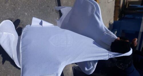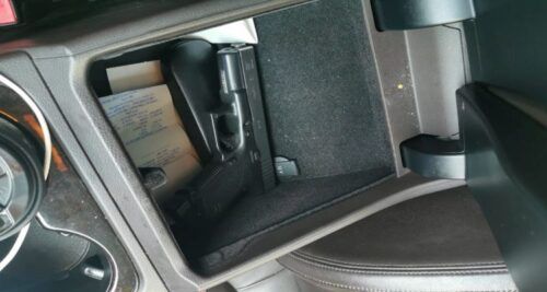 Debido a ello y bajo los principios que rigen la actuación policial citados en el artículo 21 de la Constitución Política de los Estados Unidos Mexicanos, procedieron a realizarle una inspección de seguridad a la que accedió de conformidad, encontrando en un compartimento ubicado en medio de los dos asientos delanteros, un arma corta color negro, un cargador con 9 cartuchos 9 mm y 2 cartuchos de 9 mm, asimismo se encontró en el asiento trasero, 2 chalecos color blanco y un radio de comunicación, al preguntarle si contaba con documentación que acreditara la legalidad del arma refirió que no, por lo que fue asegurado y puesto a disposición de la Fiscalía General de la República.