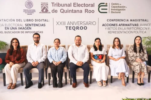 Chetumal, Quintana Roo, a 30 de enero de 2026.– El Tribunal Electoral de Quintana Roo (TEQROO) conmemoró su XXIII Aniversario con una ceremonia en la que se presentó el libro digital “Justicia Electoral: Sentencias en una Imagen” y su Buscador de Infografías, así como la Conferencia Magistral “Acciones afirmativas: avances y retos en la participación y representación política”, a cargo de Roselia Bustillo Marín, Magistrada Presidenta de la Sala Regional Xalapa del Tribunal Electoral del Poder Judicial de la Federación (TEPJF).