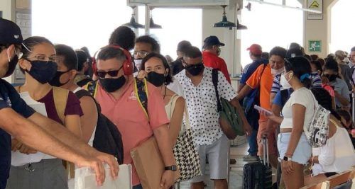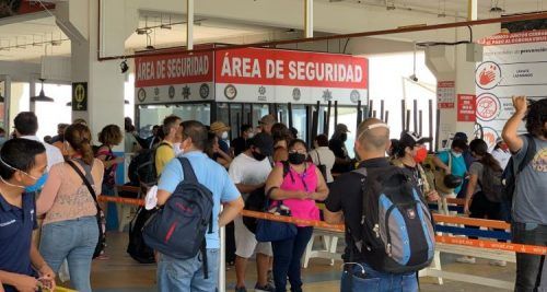 En un recorrido realizado en la terminal marítima de playa del Carmen se pudo observar que a los usuarios del transporte marítimo no respetan las indicaciones de las autoridades de mantener la sana distancia, uso de cubre bocas, y evitar estar reunidos además de que las navieras permiten la aglomeración de personas y llenan a tope las embarcaciones de pasajeros.