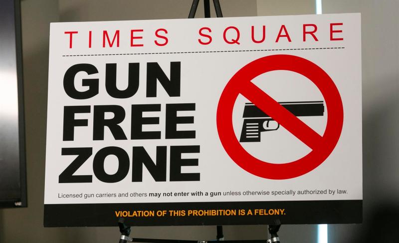Según informó el Ayuntamiento, los letreros con el mensaje “Times Square, zona libre de armas” irán acompañados por un dibujo de una pistola bajo un círculo rojo de prohibido y se colocarán entre las avenidas octava y sexta desde la calle 40 y 53, en el oeste de la ciudad y en las calles aledañas, entre la octava y novena, desde la calle 40 a la 48, lo que incluye el terminal de autobuses de Port Authority.