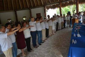 PLAYA DEL CARMEN, Quintana Roo, 05 mayo.- Tomó protesta José Luis Hernández Barragán como el nuevo presidente del Consejo Directivo 2017-2018 de la Cámara Nacional de Comercio, Servicios y Turismo (CANACO SERVYTUR) de Playa del Carmen acompañado de los nuevos consejeros en el parque turístico “Chanolandia” en donde refrendaron su compromiso de trabajar en pro de los afiliados además de cumplir con los 10 puntos del plan de trabajo.