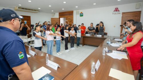 El siguiente punto, correspondió a la toma de protesta de los integrantes del Consejo Consultivo de Niñas, Niños y Adolescentes del ayuntamiento de Tulum administración 2024-2027, quienes con gran entusiasmo levantaron la mano en señal de aprobación.