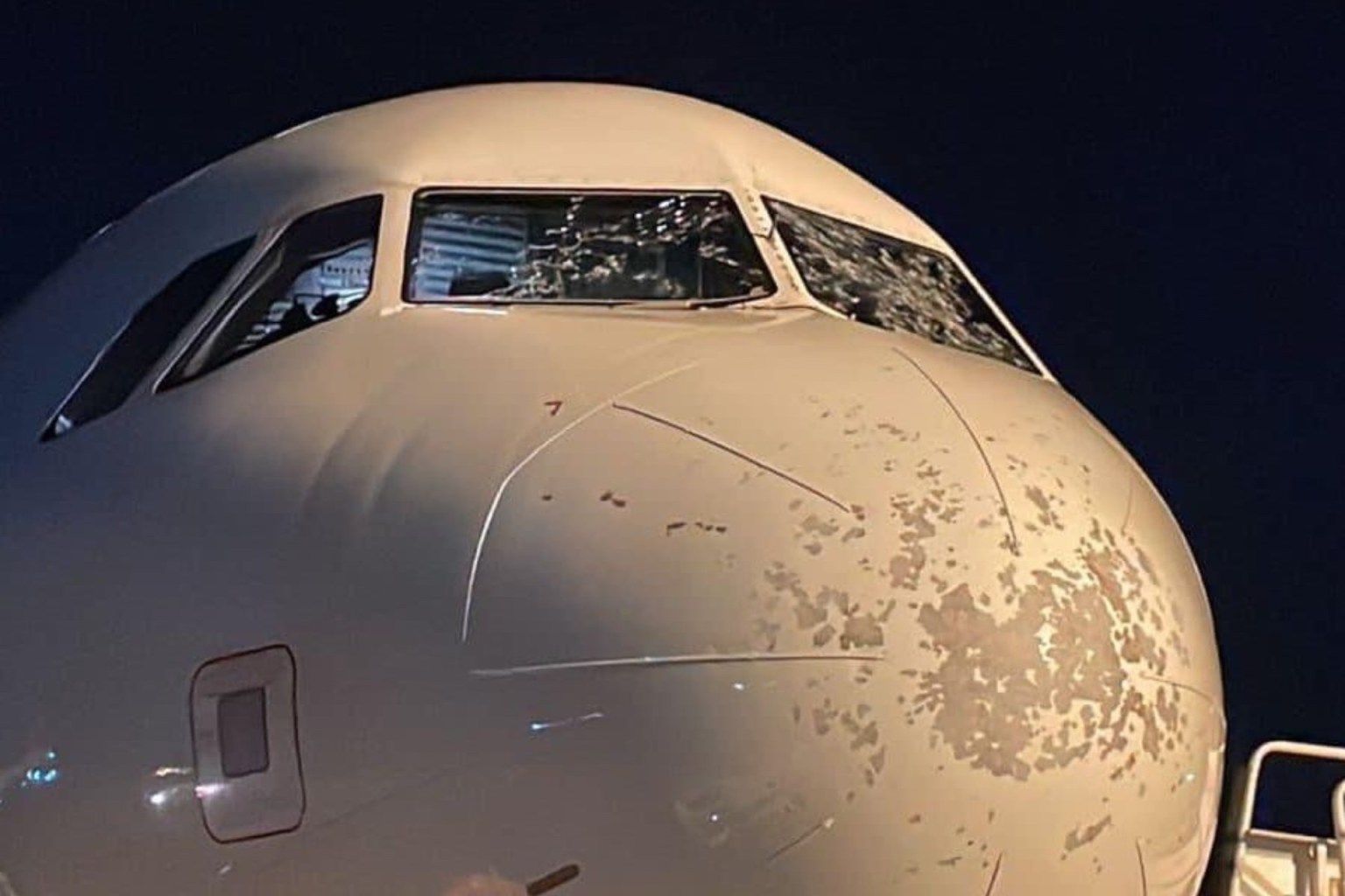 En redes sociales se dieron a conocer imágenes en donde se aprecia el daño que sufrieron los parabrisas de la aeronave.