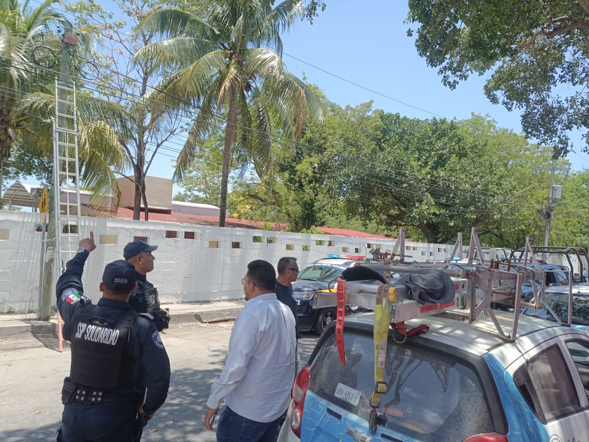 PLAYA DEL CARMEN, Quintana Roo, 05 mayo. –  Trabajador de la empresa Telmex se encontraba laborando sobre la calle 20 con avenida 85 de la colonia Ejido, cuando toco un cable de alta tensión y sufrió fuerte descarga eléctrica.