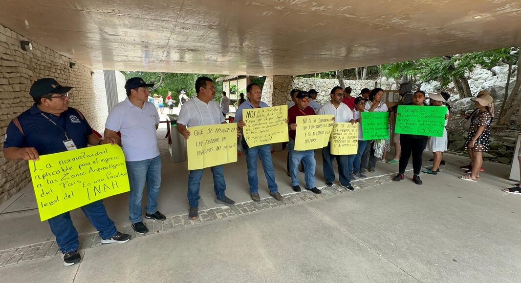 Trabajadores del INAH protestan en Tulum por cobros indebidos de empresa privada