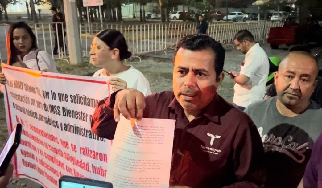 La visita del presidente Andrés Manuel López Obrador a Tamaulipas fue aprovechada por trabajadores del sector salud para manifestarse.