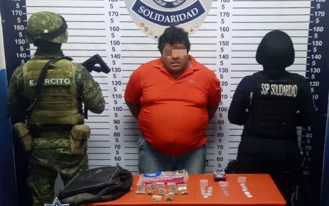 El aseguramiento fue hecho por policías de la Secretaría de Seguridad Pública y Tránsito Municipal de Solidaridad y elementos de la Secretaría de la Defensa Nacional la tarde del jueves 24 de febrero. Eduardo “N” de 49 años de edad, originario del estado de Veracruz, pretendía ingresar al municipio como pasajero a bordo de un autobús, pero fue asegurado durante una inspección de seguridad cuando el canino especializado en la detención de narcóticos adoptó una actitud de alerta señalando una mochila que tenía en su posesión.