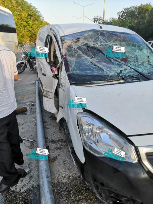 El hecho se registró alrededor de las 08:00 horas de la mañana, cuando el conductor de una camioneta de color blanca circulaba sobre la avenida Colosio o carretera Tintal con dirección al oriente, pero al estar entre las avenidas Loros y Flor de Ciruelos perdió el control de su trayectoria.