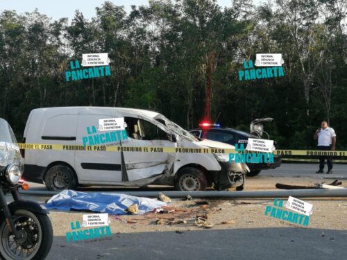 PLAYA DEL CARMEN, Quintana Roo, 21 de marzo. – Aparatoso accidente de tránsito sobre la carretera Tintal dejó como saldo un joven sin vida y el otro herido de gravedad, eran hermanos e iban a bordo de una camioneta de color blanca cuánto terminó de frente contra un poste metálico de alumbrado público en el camellón central.