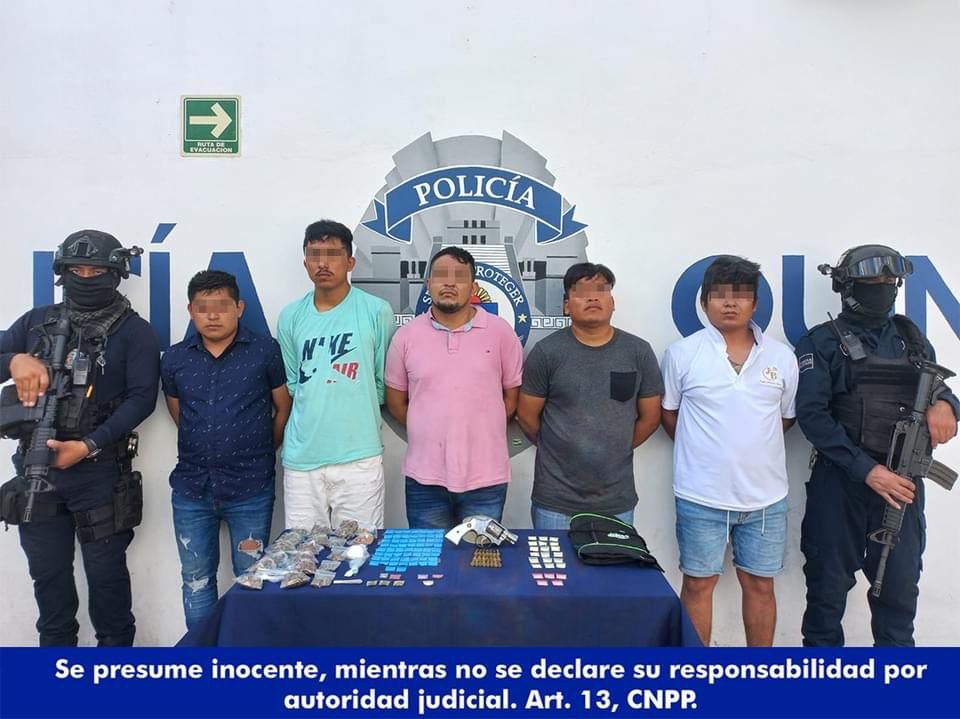De acuerdo con la información preliminar, elementos de la Policía Quintana Roo de Solidaridad realizó la detención de José Raúl “N”, Miguel “N”, José Daniel “N” y Carlos “N”, por su probable participación en delitos contra la salud y violación a la ley federal de armas de fuego y explosivos.
