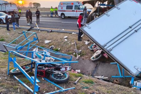 Un tráiler volcó sobre el Arco Norte, lo que además de provocar caos vial derivó en el robo de las motocicletas que transportaba.