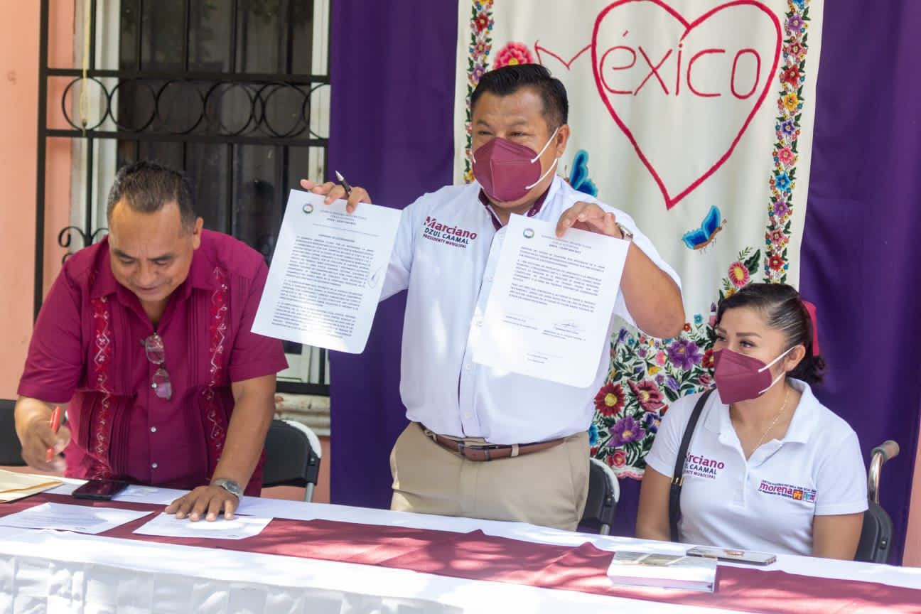 TULUM, Quintana Roo, 31 de mayo. – El candidato Marciano Dzul Caamal quien lidera la coalición Juntos Haremos Historia en Quintana Roo para la Presidencia municipal de Tulum, y el representante de la Asamblea Plural Indígena por la Autonomía (Anipa QR), Hermelindo Be Cituk firmaron un convenio para la creación de una dirección de Asuntos Indígenas en el gobierno municipal que habrá de encabezar con el voto de la mayoría que acudirá a las urnas a respaldar su proyecto este 6 de junio.