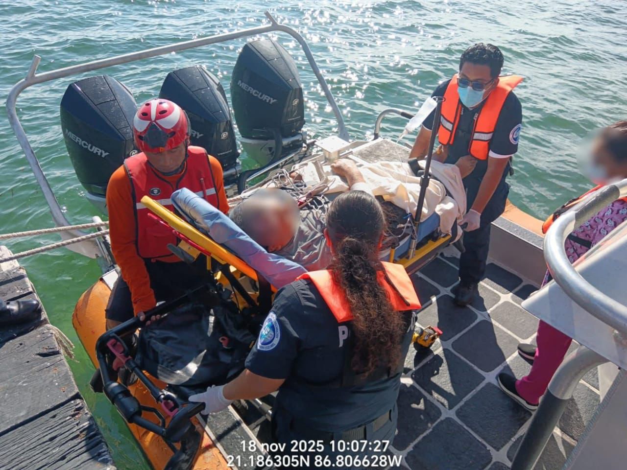 Ordenan de inmediato el zarpe de embarcaciones tipo Defender de la Estación Naval de Búsqueda, Rescate y Vigilancia Marítima (ENSAR) Isla Mujeres, con personal especializado a bordo para ambos traslados. Las embarcaciones llegaron a la Estación Naval Avanzada (ENA) de Puerto Juárez, donde los pacientes fueron recibidos por paramédicos y trasladados en ambulancia particular hacia un hospital para recibir atención médica especializada.