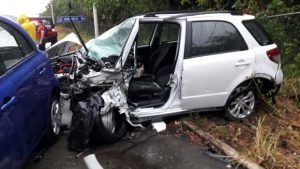PLAYA DEL CARMEN, Quintana Roo, 20 de abril.- Tremenda carambola sucedió la tarde de este jueves en la Carretera Federal 307 Chetumal – Cancún a la altura del poblado de Puerto Aventuras en la que se vieron involucrados tres automóviles debido a la combinación de la imprudencia, exceso de velocidad y el asfalto mojado dejó como saldo a 6 lesionados y cuantiosas pérdidas materiales.