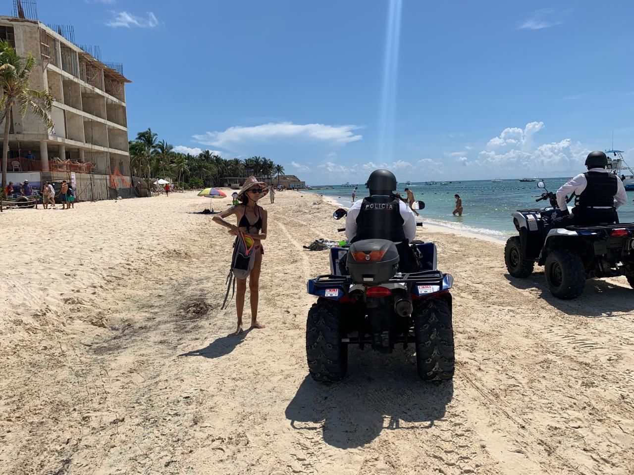 El director Operativo de la Secretaría de Protección Civil, Prevención de Riesgos y Bomberos, Emmanuel Hedding Medina informó que se supervisa la línea costera de este destino vacacional, con mayor presencia entre Xcalacoco y Playacar.