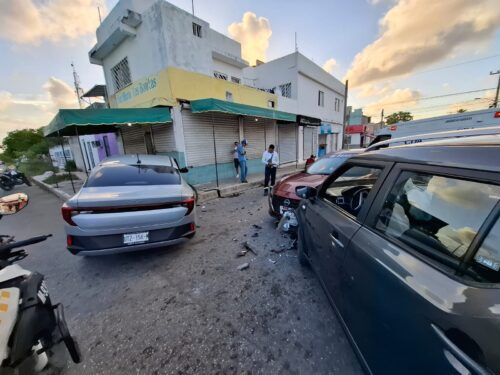 Cancún.- Un aparatoso accidente registrado la tarde de este viernes en el fraccionamiento Los Héroes, en la Supermanzana 222, dejó como saldo a varias personas lesionadas de manera leve y tres vehículos con daños de consideración, además de un severo caos vial en la zona.