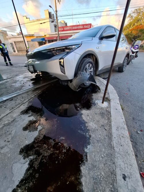El percance ocurrió en el cruce de la calle Francisco Márquez con la avenida Jacinto Canek, donde, según testigos, el conductor de un automóvil Kia intentó incorporarse sin respetar el alto marcado, lo que ocasionó que se atravesara al paso de un Suzuki gris que circulaba con preferencia hacia la avenida Chacmool.