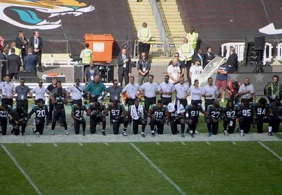 Esa fue la respuesta del presidente a lo ocurrido este domingo, cuando numerosos jugadores de la NLF escucharon antes de sus partidos el himno nacional con una rodilla en tierra o entrelazando sus brazos con sus compañeros, entrenadores y dueños de sus equipos en señal de unidad.
