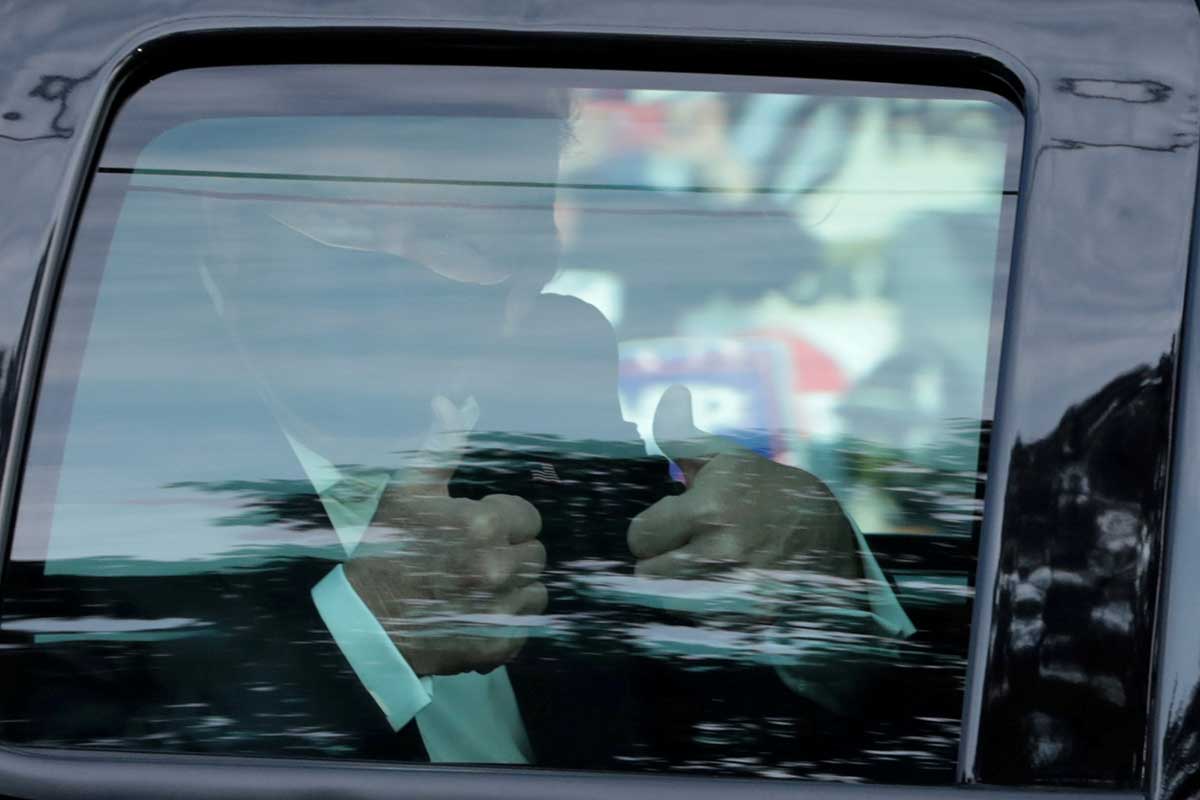 El todavía contagioso presidente sorprendió a los partidarios que se habían reunido frente al Centro Médico Militar Nacional Walter Reed, a bordo de una camioneta negra con las ventanillas subidas.