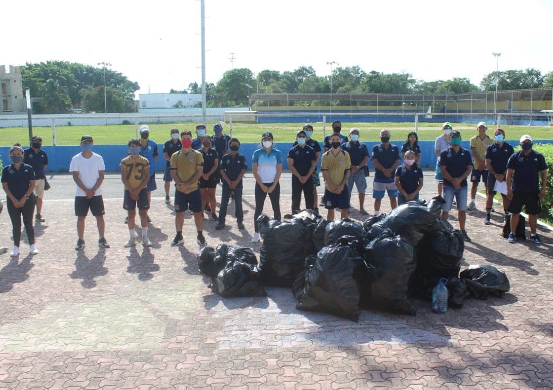 Al concluir la jornada de dicha labor social en la Unidad Deportiva “Tulum” se llenaron 12 bolsas que contenían residuos reciclables como cartón, plástico, aluminio, vidrio, unicel, tapas de plástico, entre otros.
