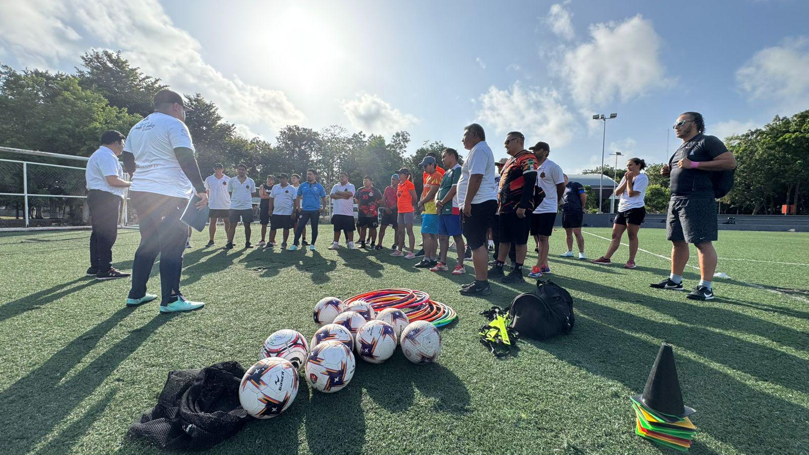 Tulum, Quintana Roo, 21 de junio de 2025.- Con el objetivo de fortalecer la cultura deportiva en el municipio, la Dirección General de Deporte y Juventud llevó a cabo una capacitación para los entrenadores locales. Esta iniciativa busca proporcionar mejores técnicas de enseñanza y desarrollar el talento de los deportistas en diversas disciplinas, en esta ocasión la actualización fue para los profesores de futbol infantil y juvenil.