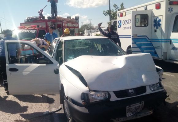 PLAYA DEL CARMEN, Quintana Roo 28 de diciembre.-La mañana de este jueves un turista en aparente estado de ebriedad provocó un aparatoso de accidente de tránsito, donde al menos tres vehículos se vieron involucrados y cuatro personas resultaron lesionadas sobre el bulevar Playa del Carmen y avenida 11 Sur.
