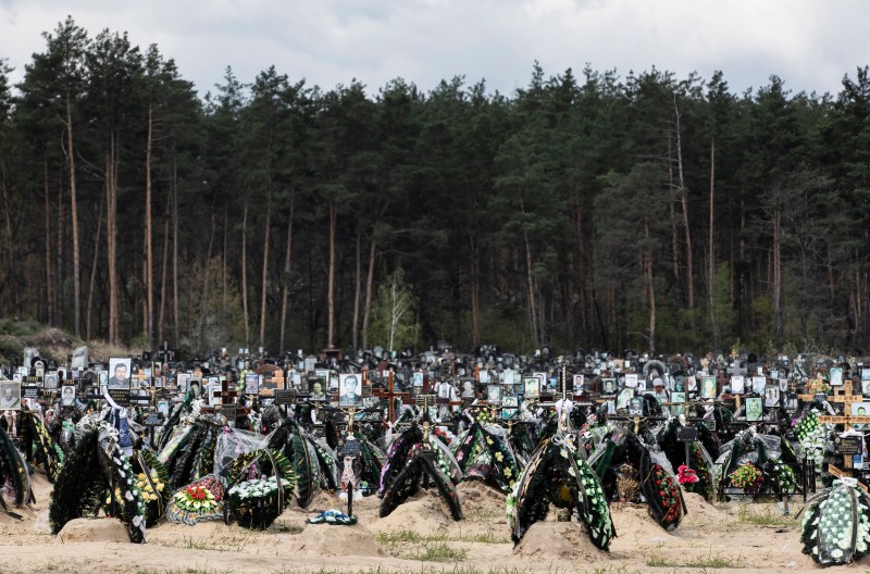 Los ucranianos celebran el domingo posterior a la Pascua Ortodoxa su Día de Muertos, y por eso los cementerios del país se llenaron de familias que visitaban sus tumbas con flores y dulces, como manda la tradición, y no han sido pocas las que han tenido que recordar a sus soldados muertos en la guerra.