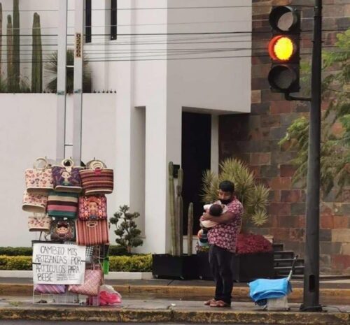 CIUDAD DE MÉXICO, 2 de septiembre.- El amor puro en su máxima expresión. Un artesano se hizo viral luego que se dieran a conocer una imágenes donde se le ve en la calle ofreciendo sus artesanías a cambio de artículos para su bebé.