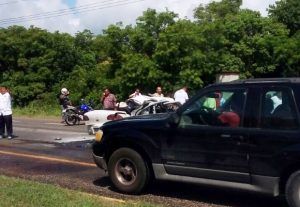 Según la información preliminar un vehículo tipo Cavalier de color blanco se desplazaba con dirección a Playa del Carmen sobre la carretera federal a la altura del hotel Grand Sirenis en el kilometro 256, cuando fue impactado por un automóvil tipo Jetta, de color gris.