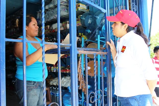 PLAYA DEL CARMEN, QUINTANA ROO.- La candidata del Partido del Trabajo (PT) por la presidencia de Solidaridad, Claudia Ivette Muñoz Villalobos, continúo recorriendo las calles de la colonia Bellavista. Los habitantes del lugar, dan la bienvenida a la candidata y le dan palabras de apoyo antes las propuestas que presenta.