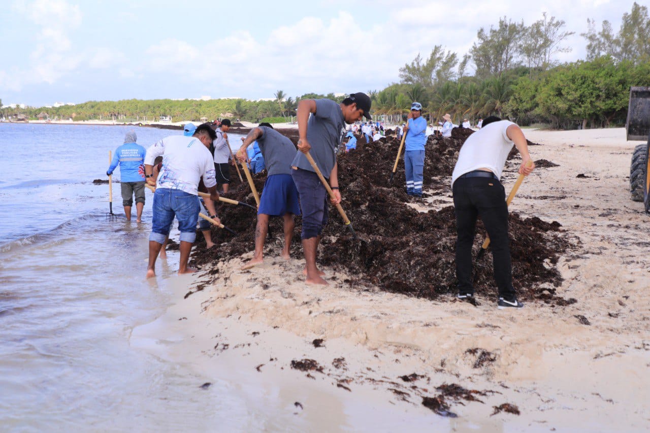 PLAYA DEL CARMEN, Quintana Roo, 28 de mayo.- Este sábado, desde muy temprano, sociedad y gobierno, sumaron esfuerzos para retirar el sargazo que ha arribado a las costas solidarenses, ya que mantener las playas limpias es vital para el gobierno municipal que encabeza la edil Lili Campos Miranda.