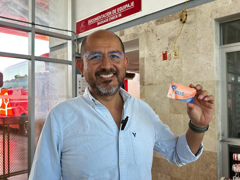 “Tenemos esta promoción, en la compra de boletos y la forma de comprar, nosotros lo que hoy promovemos es esta tarjeta de AhorroBus, que tiene un costo de 10 pesos, pero el beneficio que nos da es que nos va a dar sobre saldo”, explicó.