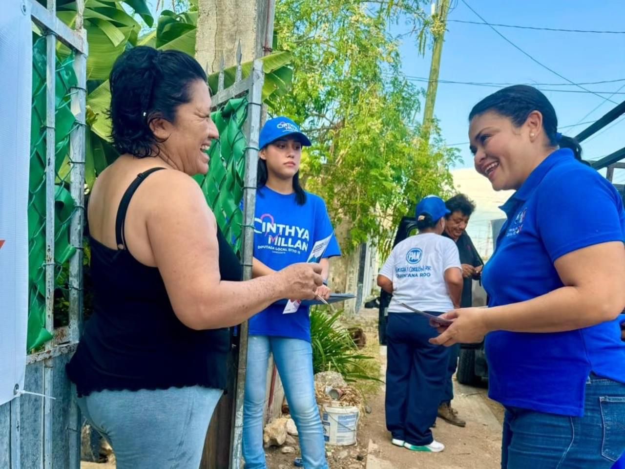 CHETUMAL, Quintana Roo, 10 de mayo.- La candidata por el distrito XV, Cinthya Millán Estrella, inició su recorrido de este día felicitando a las madres en su día, además de presentarles sus propuestas para impulsar sus emprendimientos.
