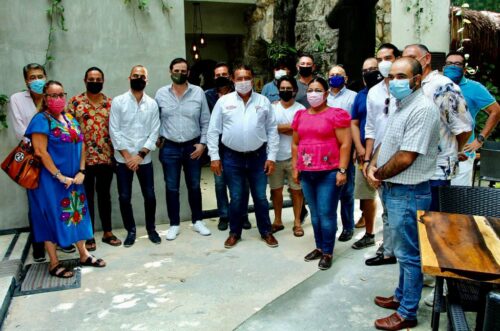 PLAYA DEL CARMEN, Quintana Roo, 05 de mayo. – El candidato a presidente municipal de Solidaridad por el partido Fuerza por México, Gabriel Mendicuti, sostuvo una reunión con los empresarios restauranteros de Playa del Carmen, quienes le patentizaron que viven con miedo por el incremento de la delincuencia, por lo cual, reiteró que si en seis meses no reduce los índices renuncia al cargo por vergüenza, como ha firmado ante notario.