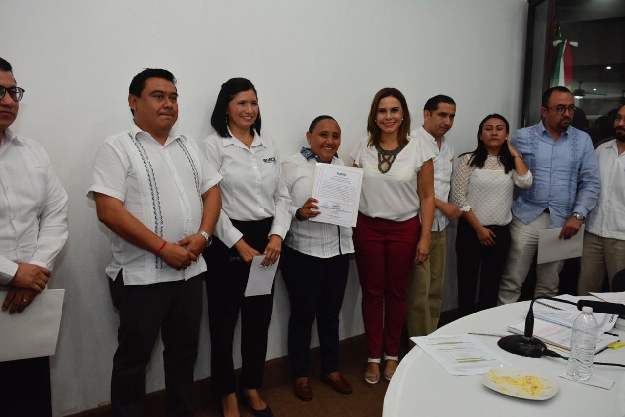 Playa del Carmen, Q. Roo., 10 de junio.-Cristina Torres recibió esta tarde la Constancia de Mayoría como diputada local electa por la vía plurinominal, de manos de la consejera del Instituto Electoral de Quintana Roo, Thalia Hernandez Robledo.
