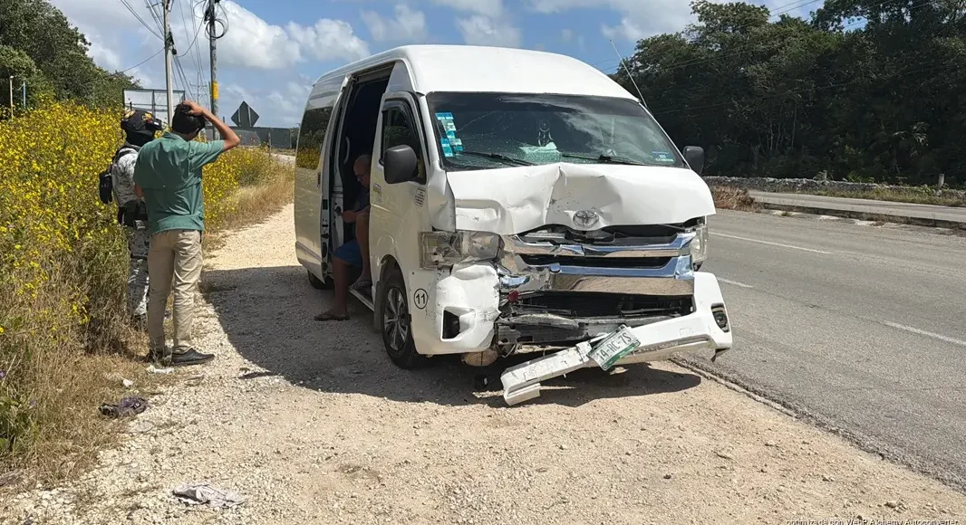 Van turística impacta camioneta y huye en la federa 307; hay un lesionado