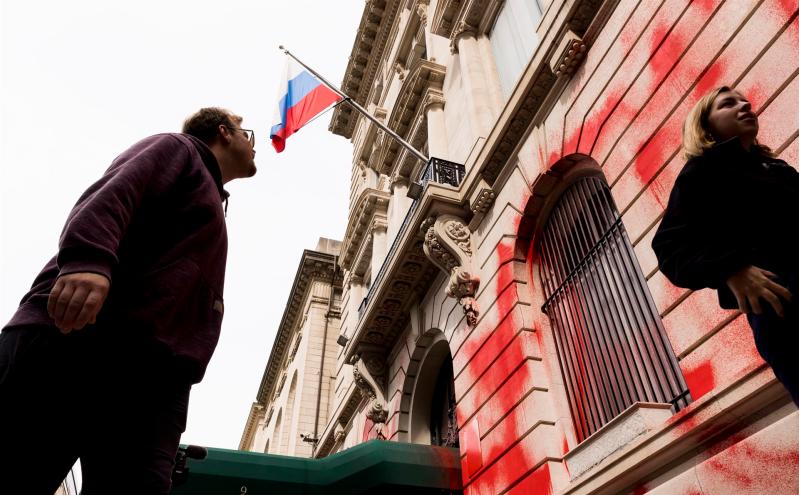 Vandalizan consulado ruso en Nueva York con pintura roja