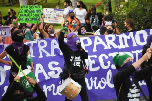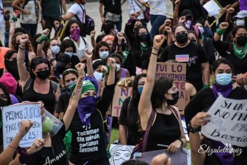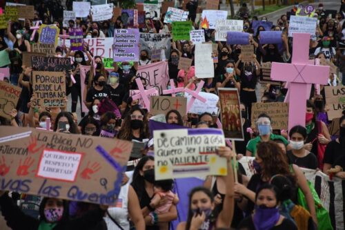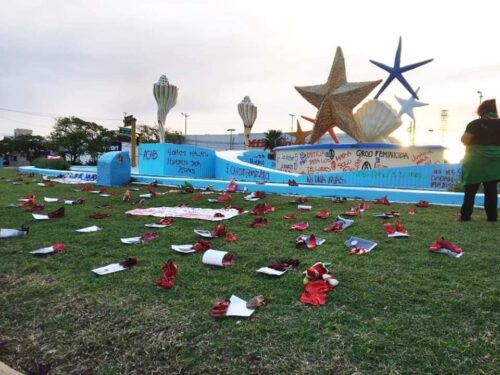 La marcha que desde un principio se preveía que no sería pacífica, concentró a a varios centenares de mujeres, partió desde el palacio municipal, donde colocaron una galería de fotografías de las víctimas, realizando la primera parada paradas en la glorieta del “Ceviche” donde ademas de grafitear, fueron colocados muñecos de peluche y zapatos de color rojo, posteriormente en el kilómetro cero colocaron cruces de color rosa y también grafitearon la fuente, finalmente se dirigieron al Malecón Tajamar donde concluyó con un concierto feministas.