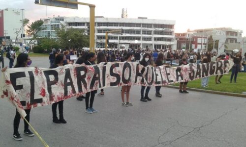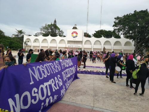 Cabe señalar que en esta marcha contrario a las anteriores, no se pudo observar familiares de víctimas portando carteles de mujeres desaparecidas o víctimas de feminicidio, la marcha concentró sólo a grupos de jóvenes quienes desde un principio iniciaron vandalizando las instalaciones del palacio municipal y se identificaron como representantes de diversos colectivos feministas. Información: Noticaribe, Fotos: Elizabeth Ruiz