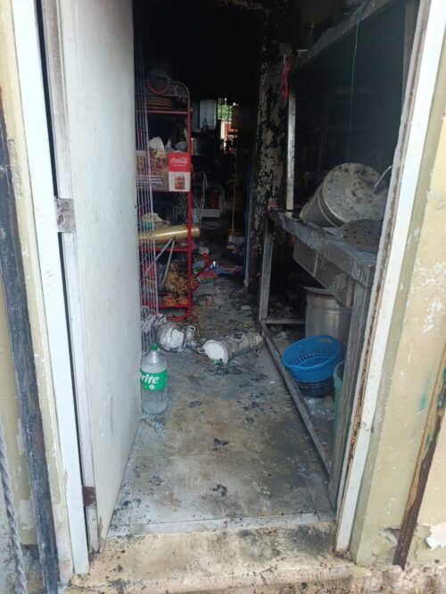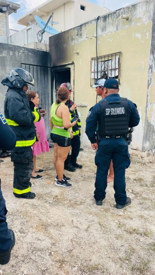 PLAYA DEL CARMEN, Q. Roo.— Habitantes del asentamiento Nueva Generación, en la alcaldía de Puerto Aventuras, se unieron para controlar un incendio registrado en la tienda de abarrotes “La Güera”, ubicada en la intersección de la calle Chicozapote con calle Mangle.