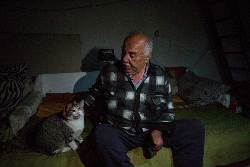 Allí vive con su hijo Olexandr, de 39 años, acompañados de sus gatos y de un montón de cosas, con una escalera que da acceso a la casa, que ni siquiera es la suya, sino de unos vecinos que les dejaron quedarse cuando ellos se fueron.