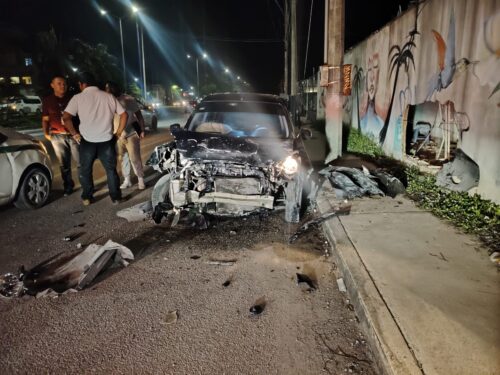 CANCÚN, Quintana Roo, 12 de octubre de 2025.– Un vehículo particular terminó impactado contra una barda durante la madrugada de este sábado, luego de presentar una aparente falla mecánica que dejó sin control al conductor. El accidente ocurrió sobre la avenida Chac Mool, a la altura del cruce con avenida Tules, en Cancún.