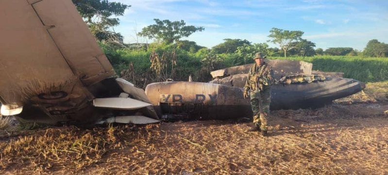 El militar agregó que la aeronave fue “inutilizada” en una pista clandestina en el estado Zulia, un mensaje que acompañó con varias fotografías que muestran la avioneta partida en pedazos y parcialmente quemada.