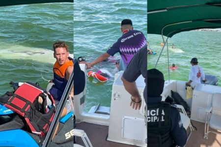 La asociación de náuticos de Cancún informó que embarcaciones de las marinas aledañas que observaron el desplome se movilizaron para brindar auxilio a los tripulantes.