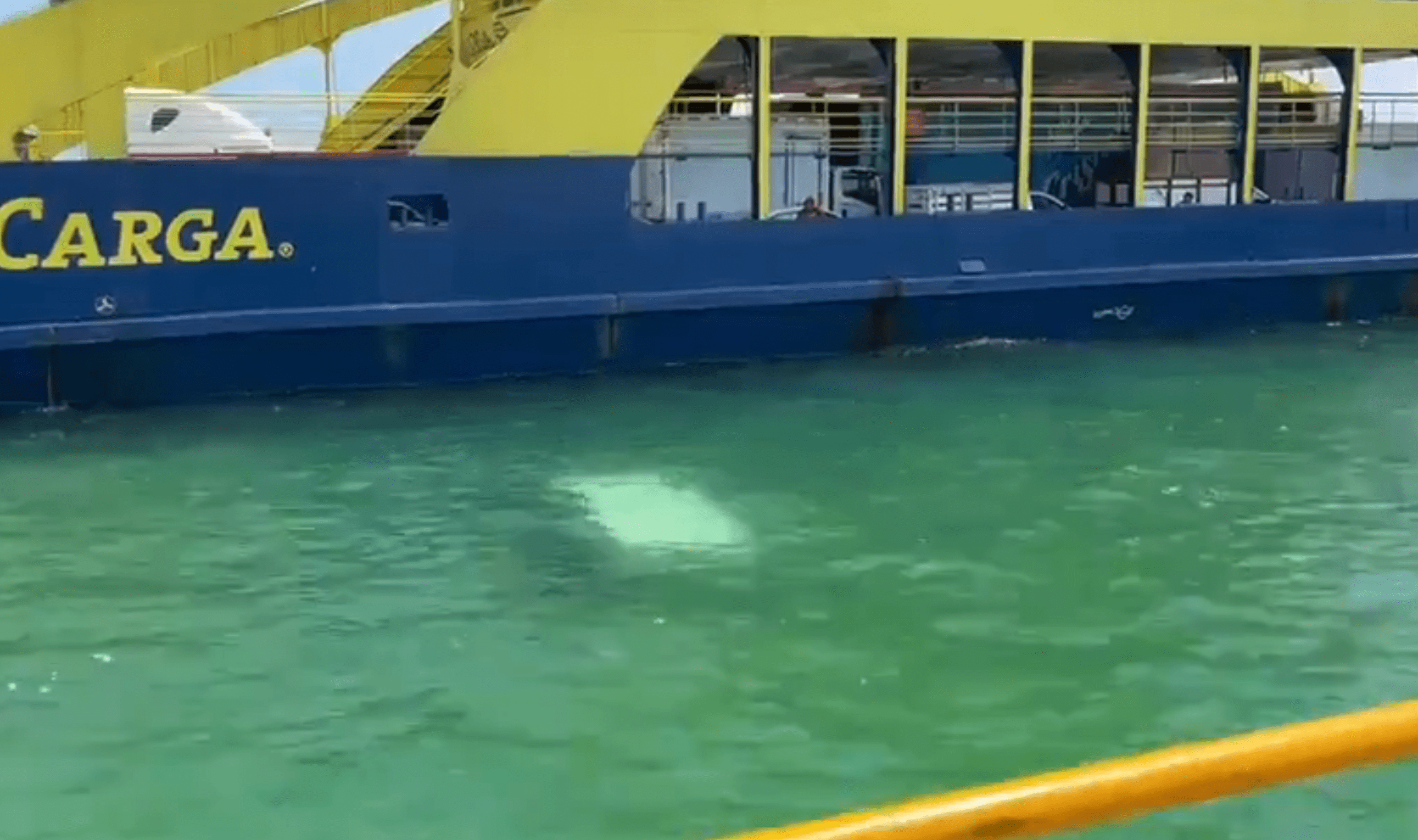 #Video Camioneta de paquetería cae al agua en ferry de Isla Mujeres. Foto tomada de video