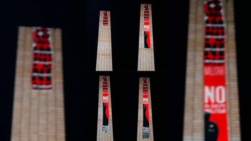 El mensaje de la lona refiere “16 años de impunidad militar” y se pronuncia contra un “golpe militar”.